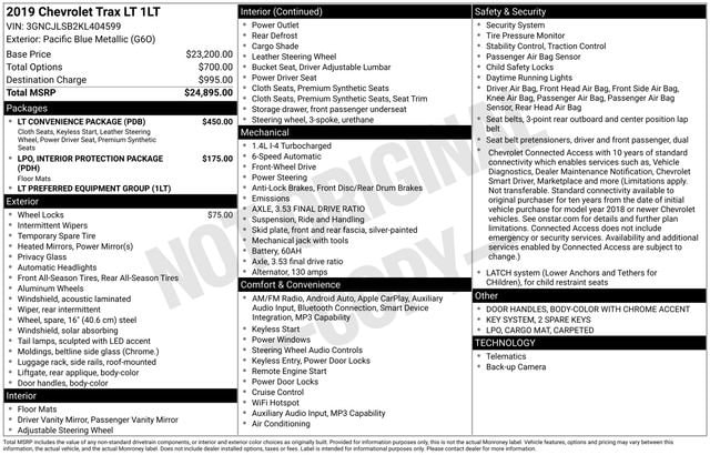 This 2019 Chevrolet Trax LT has been meticulously inspected and certified, ensuring it meets the highest standards of quality and reliability. With its impressive combination of features, performance, and safety, the Trax LT is the perfect companion for your adventures.