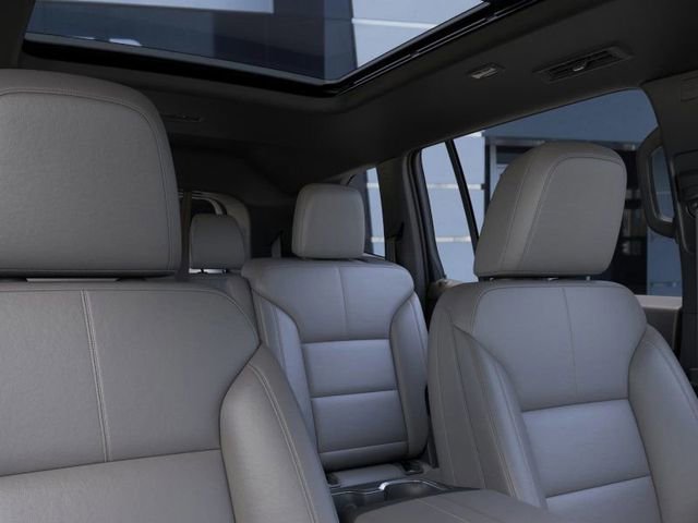 This vehicle is well equipped with these Elevation Premium Package (3-Channel Programmable Universal Home Remote, 6-Way Power Front Passenger Seat Adjuster, 7-Passenger Seating (2-2-3 Seating Configuration), Auto-Dimming Inside Rear-View Mirror, CoreTec Seat Trim, Front Passenger Power Lumbar Seat Adjuster, and Wheels: 20 x 8 Bright Silver Aluminum), Floor Liner Package (1st and 2nd Row All-Weather Floor Liner and 3rd Row All-Weather Floor Liner), Luxury Package (8 Diagonal Head-Up Display, Heated Rear Outboard Seating Positions, Heated Wiper Park, and Laminated Acoustic Glass), Preferred Equipment Group 4SC, FWD, Gray Cloth, 12 Speakers, 18 x 7.5 Aluminum Wheels, 2-Way Driver Power Lumbar Seat Adjuster, 3.49 Final Drive Axle Ratio, 3rd row seats: split-bench, 4-Way Manual Front Passenger Seat Adjuster, 4-Wheel Disc Brakes, 8-Passenger Seating (2-3-3 Seating Configuration), 8-Way Power Driver Seat Adjuster, ABS brakes, Air Conditioning, Alloy wheels, AM/FM radio: SiriusXM with 360L, Apple CarPlay/Android Auto, Auto High-beam Headlights, Auto-dimming Rear-View mirror, Automatic temperature control, Bodyside moldings, Bose Premium 12-Speaker System with Sub-Woofer, Brake assist, Bumpers: body-color, Cloth Seat Trim, Compass, Delay-off headlights, Driver door bin, Driver vanity mirror, Dual front impact airbags, Dual front side impact airbags, Electronic Stability Control, Emergency communication system: OnStar Services capable, Exterior Parking Camera Rear, Four wheel independent suspension, Front anti-roll bar, Front Bucket Seats, Front Center Armrest, Front dual zone A/C, Front fog lights, Front reading lights, Fully automatic headlights, Heated door mirrors, Heated Driver and Front Passenger Seats, Heated front seats, Heated steering wheel, Illuminated entry, Integrated Cargo Liner, Leather steering wheel, Low tire pressure warning, Navigation System, Occupant sensing airbag, Outside temperature display, Overhead airbag, Overhead console, Panic alarm, Panoramic Power Sunroof with Sunshade, Passenger door bin, Passenger vanity mirror, Power door mirrors, Power driver seat, Power Liftgate, Power steering, Power windows, Radio data system, Radio: 15 Diagonal Premium GMC Infotainment System, Rear air conditioning, Rear anti-roll bar, Rear reading lights, Rear seat center armrest, Rear side impact airbag, Rear window defroster, Rear window wiper, Remote keyless entry, Security system, SiriusXM with 360L, Speed control, Speed-sensing steering, Split folding rear seat, Spoiler, Sport steering wheel, Steering wheel mounted audio controls, Tachometer, Telescoping steering wheel, Tilt steering wheel, Traction control, Trip computer, Turn signal indicator mirrors, Variably intermittent wipers, and Voltmeter.