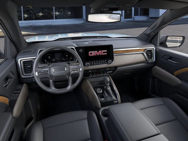 This vehicle is well equipped with these Canyon Safety Plus Package (Blind Zone Steering Assist with Trailering, Rear Cross Traffic Braking, and Ultrasonic Rear Park Assist), 4WD, 120-Volt Bed Mounted Power Outlet, 1st and 2nd Rows All-Weather Floor Liner, 2 1st Row USB Charge/Data Ports, 2 Rear USB Ports in Center Console (Charge-Only), 3.42 Rear Axle Ratio, 4-Wheel Disc Brakes, 5 Rectangular Chrome Assist Steps, 6-Way Power Passenger Seat Adjuster, 7 Speakers, 8-Way Power Driver Seat Adjuster, ABS brakes, Adaptive Cruise Control, Air Conditioning, Alloy wheels, AM/FM radio: SiriusXM with 360L, Apple CarPlay/Android Auto, Auto High-beam Headlights, Auto-dimming Rear-View mirror, Automatic Emergency Braking, Automatic Stop/Start, Automatic temperature control, Brake assist, Bumpers: body-color, Canyon Pro Safety, Compass, Delay-off headlights, Driver and Front Passenger Illuminated Visors, Driver and Front Passenger Ventilated Seats, Driver door bin, Driver Memory, Driver Mode Selector, Driver Seatback Map Pocket, Driver vanity mirror, Dual front impact airbags, Dual front side impact airbags, Dual-Zone Automatic Climate Control Air Conditioning, Electronic Stability Control, Emergency communication system: OnStar, EZ-Lift and Lower Tailgate, Following Distance Indicator, Forward Collision Alert, Front anti-roll bar, Front Bucket Seats, Front Center Armrest, Front dual zone A/C, Front fog lights, Front LED Fog Lamps, Front Passenger Seatback Map Pocket, Front Pedestrian and Bicyclist Braking, Front reading lights, Front wheel independent suspension, Genuine wood dashboard insert, Genuine wood door panel insert, HD Surround Vision, Heads-Up Display, Heated door mirrors, Heated Driver and Front Passenger Seats, Heated front seats, Heated Steering Wheel, Heated steering wheel, Illuminated entry, Inside Rear-View Auto-Dimming Mirror, IntelliBeam Automatic High Beam on/Off, Interior Overhead Courtesy Light with Dual Reading Lamp, Lane Keep Assist with Lane Departure Warning, Low tire pressure warning, Memory seat, Multicolor 6.3 Diagonal Head-Up Display, MultiStow Tailgate Storage Compartment, Navigation System, Occupant sensing airbag, Off-Road Suspension, Outside temperature display, Overhead airbag, Overhead console, Panic alarm, Passenger door bin, Passenger vanity mirror, Perforated Leather-Appointed Seat Trim, Power door mirrors, Power Driver Lumbar Control Seat Adjuster, Power driver seat, Power Inner Sliding Glass Sunroof with Manual Shade, Power Passenger Lumbar Control Seat Adjuster, Power passenger seat, Power steering, Power windows, Premier Soft Roll-Up Truck Bed Cover, Premium 7-Speaker Bose Sound System, Radio data system, Radio: 11.3 Diagonal Premium GMC Infotainment System, Rear Center Fold-Down Armrest with 2 Cupholders, Rear of Console 120-Volt Power Outlet, Rear Pedestrian Alert, Rear reading lights, Rear seat center armrest, Rear step bumper, Rear window defroster, Remote keyless entry, Remote Vehicle Starter System, Safety Alert Seat, Security system, SiriusXM with 360L, Speed control, Speed-sensing steering, Split folding rear seat, Spray-on Bedliner with GMC Logo, Steering wheel mounted audio controls, Stop/Start System Disable Button Engine Control, Tachometer, Tailgate Keyed Cylinder Lock, Telescoping steering wheel, Til and Telescopic Manual Steering Column, Tilt steering wheel, Traction control, Trip computer, Variably intermittent wipers, Ventilated front seats, Wheels: 20 x 9 Diamond Cut Dark Gray Aluminum, Wireless Apple CarPlay/Wireless Android Auto, and Wireless Phone Charging.