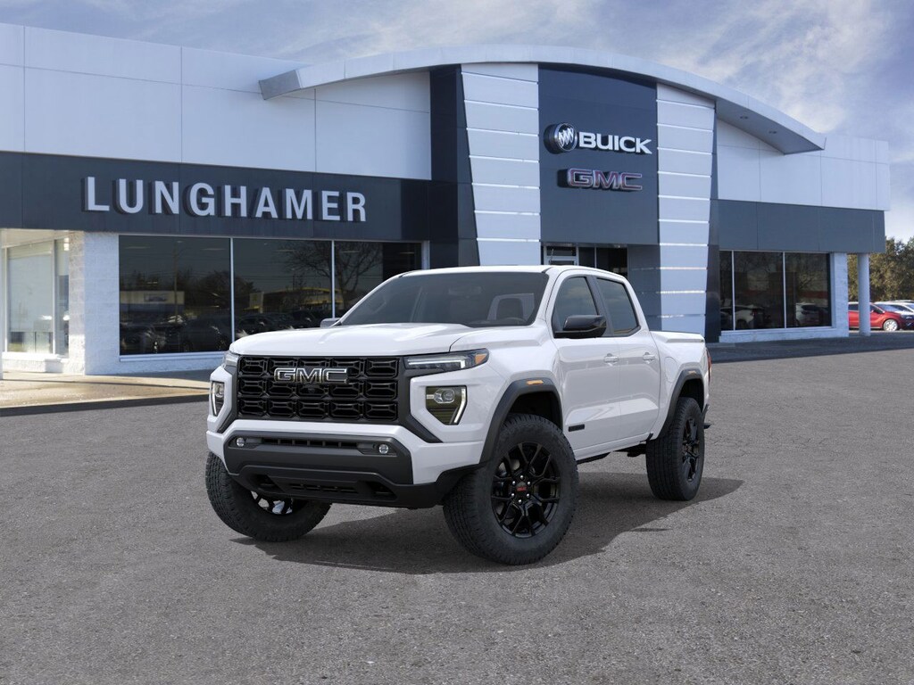 This vehicle is well equipped with these Black Badging Package (Black Badges and Black GMC Emblems), Canyon Safety Plus Package (Blind Zone Steering Assist with Trailering, Rear Cross Traffic Braking, and Ultrasonic Rear Park Assist), Convenience Package (120-Volt Bed Mounted Power Outlet, 2 Rear USB Ports in Center Console (Charge-Only), Driver and Front Passenger Illuminated Visors, Dual-Zone Automatic Climate Control Air Conditioning, EZ-Lift and Lower Tailgate, Front LED Fog Lamps, Inside Rear-View Auto-Dimming Mirror, Interior Overhead Courtesy Light with Dual Reading Lamp, MultiStow Tailgate Storage Compartment, Rear of Console 120-Volt Power Outlet, Remote Vehicle Starter System, Tailgate Keyed Cylinder Lock, and Til and Telescopic Manual Steering Column), Elevation Premium Package (CoreTec Seat Trim, Driver Seatback Map Pocket, and Rear Center Fold-Down Armrest with 2 Cupholders), Preferred Equipment Group 4VL (Automatic Emergency Braking, Canyon Pro Safety, Following Distance Indicator, Forward Collision Alert, Front Pedestrian and Bicyclist Braking, IntelliBeam Automatic High Beam on/Off, and Lane Keep Assist with Lane Departure Warning), Preferred Package (8-Way Power Driver Seat Adjuster, Heated Driver and Front Passenger Seats, and Power Driver Lumbar Control Seat Adjuster), Technology Package (Adaptive Cruise Control, HD Surround Vision, and Rear Pedestrian Alert), 4WD, 1 Rear USB Port in Center Console (Charge-Only), 1st and 2nd Rows All-Weather Floor Liner, 2 1st Row USB Charge/Data Ports, 20 Black Aluminum Wheels, 3.42 Rear Axle Ratio, 4-Way Manual Front Passenger Seat Adjuster, 4-Wheel Disc Brakes, 6 Speakers, 6-Speaker Audio System Feature, 6-Way Manual Driver Seat Adjuster, ABS brakes, Air Conditioning, Alloy wheels, AM/FM radio: SiriusXM with 360L, Apple CarPlay/Android Auto, Auto High-beam Headlights, Automatic Stop/Start, Brake assist, Bumpers: body-color, Cloth Seat Trim, Compass, Delay-off headlights, Driver door bin, Driver Mode Selector, Driver vanity mirror, Dual front impact airbags, Dual front side impact airbags, Electronic Stability Control, Emergency communication system: OnStar, Front anti-roll bar, Front Bucket Seats, Front Center Armrest, Front Passenger Seatback Map Pocket, Front wheel independent suspension, Heated door mirrors, Illuminated entry, Low tire pressure warning, Navigation System, Occupant sensing airbag, Off-Road Suspension, Outside temperature display, Overhead airbag, Overhead console, Panic alarm, Passenger door bin, Passenger vanity mirror, Power door mirrors, Power Inner Sliding Glass Sunroof with Manual Shade, Power steering, Power windows, Radio data system, Radio: 11.3 Diagonal Premium GMC Infotainment System, Rear reading lights, Rear step bumper, Rear window defroster, Remote keyless entry, Security system, SiriusXM with 360L, Speed control, Speed-sensing steering, Split folding rear seat, Spray-on Bedliner with GMC Logo, Steering wheel mounted audio controls, Stop/Start System Disable Button Engine Control, Tachometer, Tilt steering wheel, Traction control, Trip computer, Variably intermittent wipers, Wheels: 18 x 8.5 Gloss Black Finish Aluminum, Wheels: 20 x 9 Aluminum Transit, and Wireless Apple CarPlay/Wireless Android Auto.