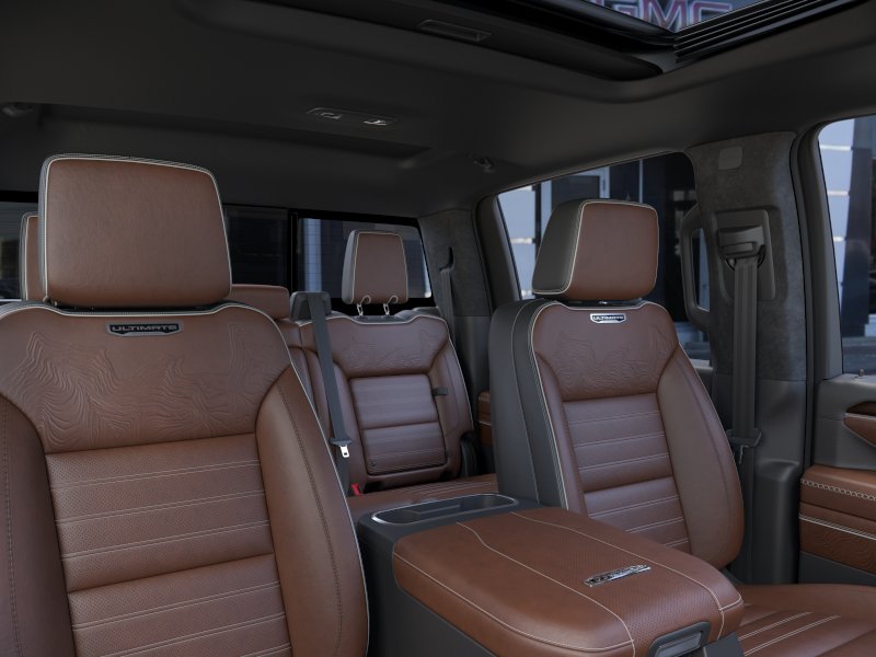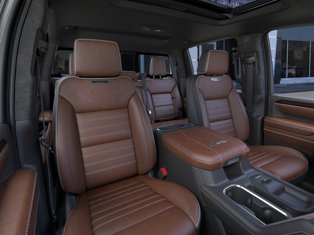 This vehicle is well equipped with these Gooseneck/5th Wheel Prep Package, Snow Plow Prep/Camper Package (220-Amp Alternator), Technology Package (Inside Rearview Auo-Dimming Rear Camera Mirror and Multicolor 15 Diagonal Head-Up Display), X31 Off-Road Package (Hill Descent Control and Off-Road Suspension), 10-Speed Automatic, 4WD, Alpine Umber Leather, 12 Speakers, 120-Volt Bed Mounted Power Outlet, 120-Volt Instrument Panel Power Outlet, 16-Way Power Driver Seat Adjuster with Lumbar, 16-Way Power Passenger Seat Adjuster with Lumbar, 2 Charge-Only Rear USB Ports, 2 Charge/Data USB Ports Inside Center Console, 2 USB Ports, 2-Speed Active Transfer Case, 3.42 Axle Ratio, 4-Wheel Disc Brakes, ABS brakes, Air Conditioning, Alloy wheels, AM/FM radio: SiriusXM with 360L, Apple CarPlay/Android Auto, Auto High-beam Headlights, Auto-dimming door mirrors, Auto-dimming Rear-View mirror, Automatic Emergency Braking, Automatic temperature control, Bed View Camera with Two Trailer Camera Provisions, Block heater, Bose Premium Series 12-Speaker System, Brake assist, Buckle to Drive, Bumpers: body-color, Compass, Deep-Tinted Glass, Delay-off headlights, Driver door bin, Driver Memory, Driver vanity mirror, Dual front impact airbags, Dual front side impact airbags, Dual Heavy-Duty 70 Amp Battery, Electric Rear-Window Defogger, Electronic Stability Control, Emergency communication system: OnStar, Floor-Mounted Center Console, Following Distance Indicator, Forward Collision Alert, Front anti-roll bar, Front Bucket Seats, Front Center Armrest, Front dual zone A/C, Front fog lights, Front Pedestrian Braking, Front Rain-Sensing Wipers, Front reading lights, Front wheel independent suspension, Full Grain Leather Seat Trim, Fully automatic headlights, Garage door transmitter, Genuine wood dashboard insert, Genuine wood door panel insert, Hard Folding Truck Bed Cover, HD Surround Vision, Heads-Up Display, Heated 2nd Row Outboard Seats, Heated door mirrors, Heated Driver and Front Outboard Passenger Seats, Heated front seats, Heated rear seats, Heated steering wheel, Hitch Guidance with Hitch View, Illuminated entry, in-Vehicle Trailering System App, IntelliBeam Automatic High Beam on/Off, Keyless Open and Start, Lane Departure Warning System, Leather steering wheel, LED Cargo Area Lighting, LED Smoked Amber Roof Marker Lamps, Low tire pressure warning, Manual Tilt-Wheel/Telescoping Steering Column, Memory seat, Occupant sensing airbag, OnStar Services Capable, Outside temperature display, Overhead airbag, Overhead console, Panic alarm, Passenger door bin, Passenger vanity mirror, Pickup Box, Power door mirrors, Power driver seat, Power Front Passenger Windows with Express Up/Down, Power moonroof, Power passenger seat, Power Sliding Rear Window with Defogger, Power steering, Power Sunroof, Power windows, Premium audio system: Premium GMC Infotainment System, Push Button Start, Radio: AM/FM Stereo with Premium GMC Infotainment System, Rain sensing wipers, Rear Cross Traffic Alert, Rear reading lights, Rear seat center armrest, Rear step bumper, Rear Wheelhouse Liners, Rear window defroster, Remote keyless entry, Remote Vehicle Starter System, Safety Alert Seat, Security system, Signature Denali Ultimate Grille in Vadar Chrome, SiriusXM with 360L Trial Subscription, Speed control, Speed-sensing steering, Split folding rear seat, Spray-on Pickup Bedliner with GMC Logo, Steering Wheel Audio Controls, Steering wheel mounted audio controls, Tachometer, Telescoping steering wheel, Tilt steering wheel, Traction control, Trailer Cam Provisions and Trailer Viewing Software Tax, title, license and dealer fees (unless itemized above) are extra. Not available with special finance or lease offers. Price incl