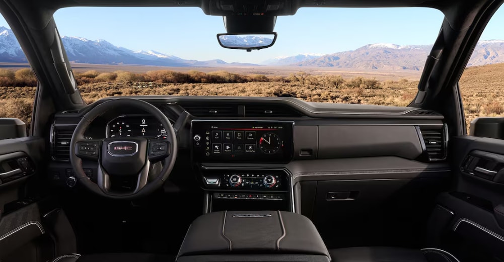 The latest infotainment amenities complement this GMC truck for sale. Aside from the entry-level model, every trim comes with a 12.3-inch color driver information display and a 13.4-inch touchscreen with an integrated navigation system. Satellite radio is standard too, and you'll have the convenience of 120V power outlets in the dash and bed.