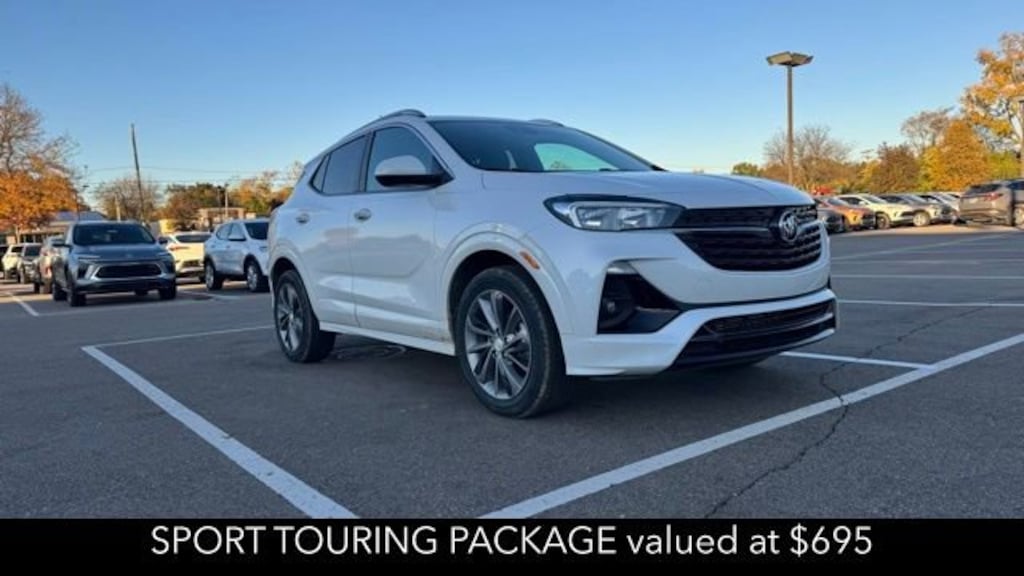 Encore GX Select, 4D Sport Utility, ECOTEC 1.3L Turbo, CVT, FWD, White Frost Tricoat, Ebony With Ebony Interior Accents Cloth, 2 USB Ports w/Auxiliary Input Jack, 4-Wheel Disc Brakes, 6 Speakers, ABS brakes, Air Conditioning, AM/FM radio: SiriusXM, Automatic temperature control, Body Color Rocker Moldings, Body-Color Bodyside Moldings, Custom Grille w/Red Accents, Dual front impact airbags, Dual front side impact airbags, Emergency communication system: OnStar and Buick connected services capable, Enhanced Performance 6-Speaker System, Front anti-roll bar, Front dual zone A/C, Front wheel independent suspension, Hands Free Power Liftgate, Hands-Free Power Liftgate Package, Heated Driver & Front Passenger Seats, Lane Change Alert w/Side Blind Zone Alert, Passenger door bin, Preferred Equipment Group 1SD, Radio data system, Radio: 8 Diagonal Buick Infotainment System, Rear Cross Traffic Alert, Rear window defroster, Red Front & Rear Bumper Protective Molding, Ride & Handling Suspension, Safety Package II, SiriusXM Radio, Speed-sensing steering, Sport Front Bumper w/Red Accents, Sport Rear Bumper w/Red Accents, Sport Touring Badge, Sport Touring Package, Traction control, Wheels: 18 Alum w/Dark Android High Gloss Inserts, Wireless Apple CarPlay/Wireless Android Auto.