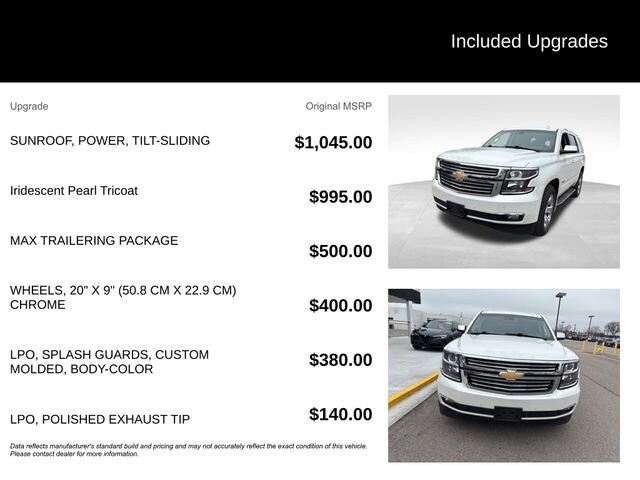 Boasting a bold and commanding presence, the Tahoe Premier's sleek exterior is enhanced by the striking Iridescent Pearl Tricoat paint and 20-inch chrome wheels. Step inside and you'll be enveloped in the luxurious perforated leather-appointed seating, with heated and ventilated front seats and a heated steering wheel for unparalleled comfort.