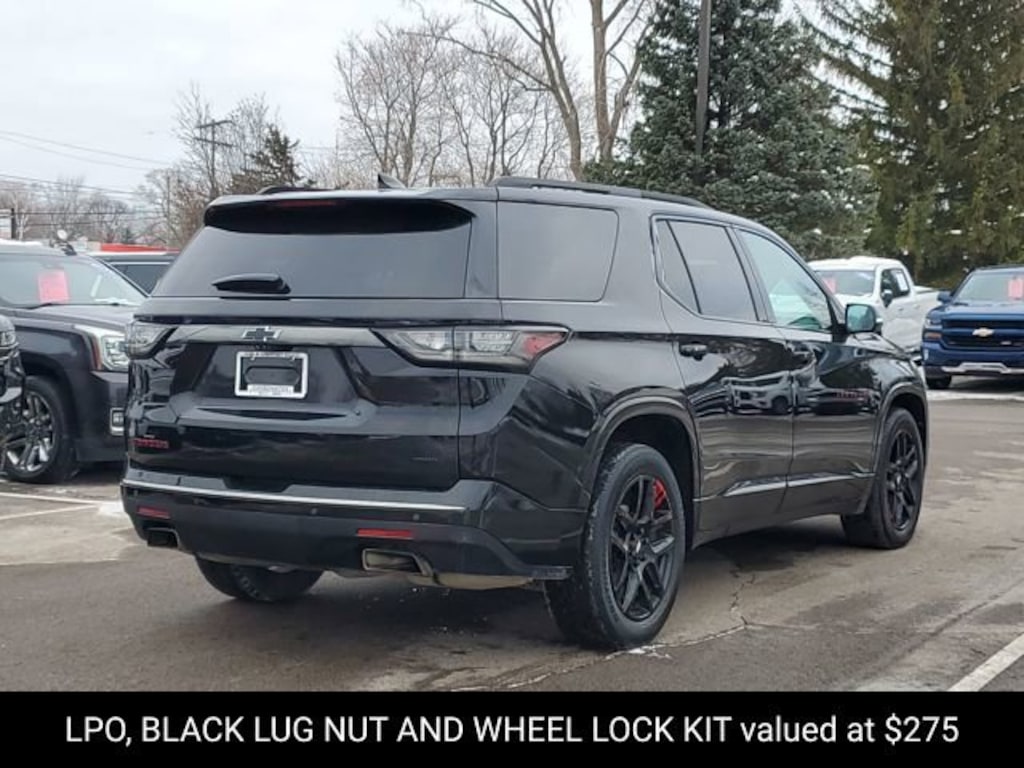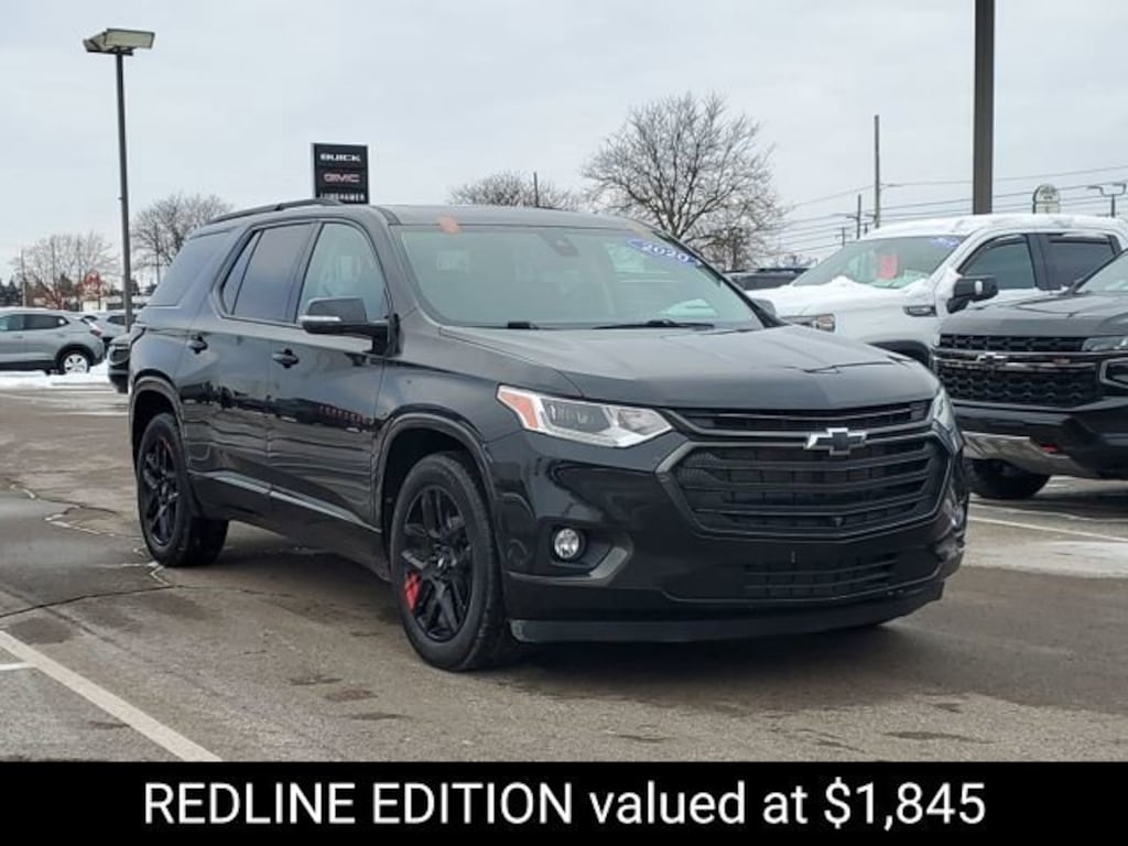 FACTORY CERTIFIED, INCLUDES WARRANTY, SERVICE RECORD AVAILABLE, GOOD TIRES, REAR BACK UP CAMERA, Traverse Premier, 4D Sport Utility, 3.6L V6 SIDI VVT, 9-Speed Automatic, AWD, Mosaic Black Metallic, Jet Black Leather, 1st & 2nd Row All-Weather Floor Mats, 3rd Row All-Weather Floor Mats, 3rd row seats: split-bench, 7-Passenger Seating (2-2-3 Seating Configuration), All-Weather Cargo Mat (LPO), Alloy wheels, Auto High-beam Headlights, Black Door Handles, Black Lug Nut & Wheel Lock Kit (LPO), Brake assist, Delay-off headlights, Dual SkyScape 2-Panel Power Sunroof, Electronic Stability Control, Four wheel independent suspension, Front Bucket Seats, Front Center Armrest, Front fog lights, Fully automatic headlights, Heated front seats, Heated rear seats, Horizontal Cargo Net (LPO), Interior Protection Package (LPO), Memory seat, Navigation System, Ornamentation, Passenger door bin, Perforated Leather-Appointed Seat Trim, Power driver seat, Power Liftgate, Power passenger seat, Power steering, Power windows, Preferred Equipment Group 1LZ, Redline Edition, Remote keyless entry, Speed-sensing steering, Steering wheel memory, Steering wheel mounted audio controls, Traction control, Ventilated front seats, Wheels: 20 Argent Metallic Machine Faced Aluminum, Wheels: 20 Gloss Black Painted Alum w/Red Stripes.