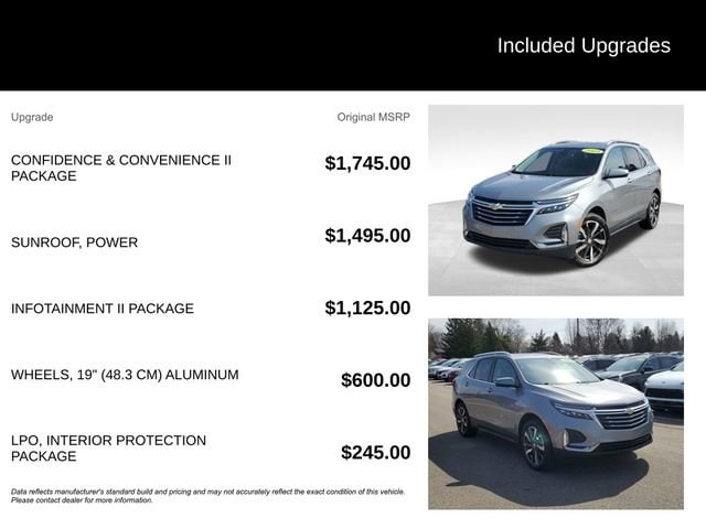 The Equinox Premier's striking exterior, with its sleek lines and bold design cues, commands attention wherever it goes. The 19-inch aluminum wheels and chrome accents add a touch of sophistication, while the power liftgate and roof rails offer exceptional versatility for all your cargo needs.