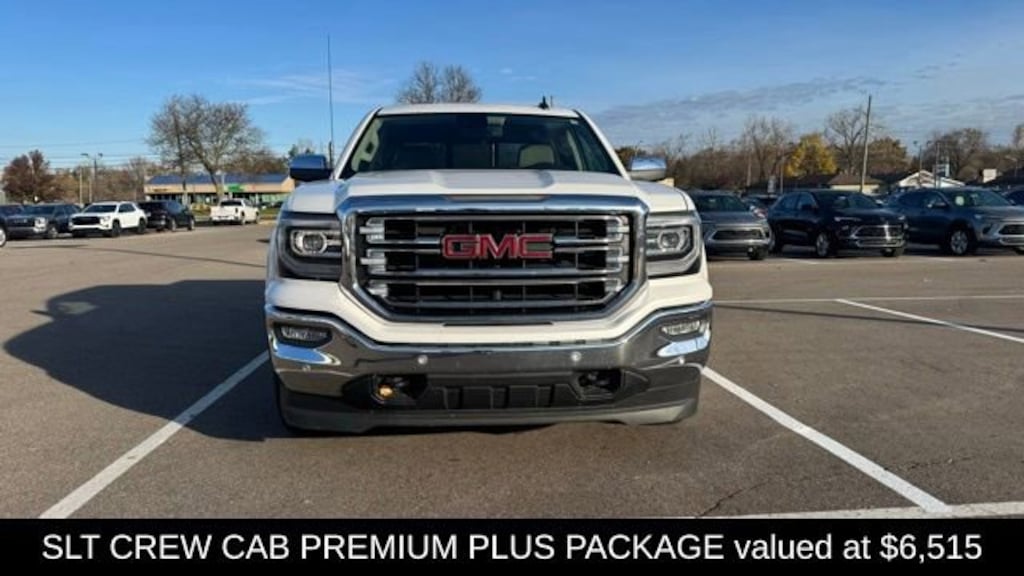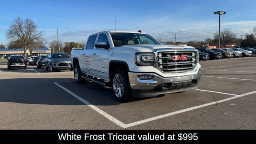 GOOD TIRES, REAR BACK UP CAMERA, LEATHER, GOOD BRAKES, RECENT TRADE IN, Sierra 1500 SLT, 4D Crew Cab, EcoTec3 5.3L V8, 8-Speed Automatic with Overdrive, 4WD, White Frost Tricoat, Cocoa/Dune Leather, 110-Volt AC Power Outlet, 150 Amp Alternator, 1st & 2nd Row Color-Keyed Carpeted Floor Mats, 2-Speed Active Electronic AutoTrac Transfer Case, 20 x 9 Chrome Clad Aluminum Wheels, 4.2 Diagonal Color Display Driver Info Center, 6 Speakers, 6-Speaker Audio System, 6 Rectangular Chromed Tubular Assist Steps, Air Conditioning, Alloy wheels, Auto-Dimming Inside Rear-View Mirror, Automatic temperature control, Auxiliary External Transmission Oil Cooler, Bose Speaker System, Brake assist, CD player, Chrome Bodyside Moldings, Chrome Door Handles, Chrome Mirror Caps, Color-Keyed Carpeting, Deep-Tinted Glass, Delay-off headlights, Driver & Front Passenger Illuminated Vanity Mirrors, Dual-Zone Automatic Climate Control, Electric Rear-Window Defogger, Electronic Stability Control, Enhanced Driver Alert Package, Exterior Parking Camera Rear, EZ Lift & Lower Tailgate, Forward Collision Alert, Front fog lights, Front Frame-Mounted Black Recovery Hooks, Front Full Feature Power Reclining Bucket Seats, Fully automatic headlights, GMC 4G LTE, HD Radio, Heated & Ventilated Front Bucket Seats, Heavy Duty Suspension, Heavy-Duty Rear Locking Differential, High-Intensity Discharge Headlights, High-Performance LED Headlamps, Integrated Trailer Brake Controller, IntelliBeam Automatic High Beam On/Off Headlight, Lane Keep Assist, Leather Wrapped Heated Steering Wheel, Leather Wrapped Steering Wheel w/Cruise Controls, LED Cargo Box Lighting, LED Tailamps w/Signature, Low Speed Forward Automatic Braking, Manual Tilt/Telescoping Steering Column, OnStar & GMC Connected Services Capable, Power Adjustable Pedals, Power Folding & Adjustable Heated Outside Mirrors, Power Sliding Rear Window w/Defogger, Power Windows w/Driver Express Up & Down, Preferred Equipment Group 4SA, Premium audio system: GMC Infotainment System, Radio data system, Radio: AM/FM/GMC Infotainment & Navigation, Rear 60/40 Folding Bench Seat (Folds Up), Rear Wheelhouse Liners, Remote Keyless Entry, Remote Vehicle Starter System, Single Slot CD/MP3 Player, SLT Crew Cab Premium Plus Package, Spray-On Pickup Box Bed Liner w/GMC Logo, Steering Wheel Audio Controls, Tachometer, Telescoping steering wheel, Theft Deterrent System (Unauthorized Entry), Thin Profile LED Fog Lamps, Tilt steering wheel, Trailering Equipment, Trip computer, Ultrasonic Front & Rear Park Assist, Universal Home Remote, Voltmeter, Wheels: 18 x 8.5 Polished Aluminum, Wireless Charging.