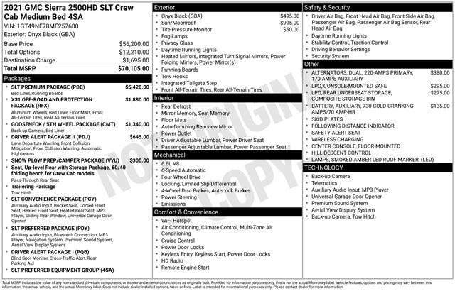 This Sierra 2500HD SLT is equipped with a host of premium features that elevate your driving experience. The Bose Premium 7 Speaker Sound System and Radio: Premium GMC Infotainment System with Navigation provide exceptional audio quality and connectivity. The Steering Wheel Audio Controls, Electric Rear-Window Defogger, and 12-Volt Rear Auxiliary Power Outlet add convenience and comfort.