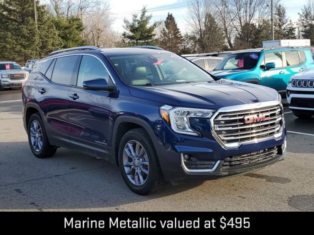 Clean CARFAX. CARFAX One-Owner.Certified. New Price! 24/29 City/Highway MPGMarine Metallic 2023 GMC Terrain SLT FWD 9-Speed Automatic 1.5L DOHCGOOD TIRES, GOOD BRAKES, Adaptive Cruise Control, Lane Change Alert w/Side Blind Zone Alert, Memory seat, Preferred Equipment Group 4SA, Rear Cross-Traffic Alert, Rear Park Assist, Safety Alert Seat, Side Blind Zone & Rear Cross Traffic, Terrain Pro Safety Plus.Our dealership is family owned and operated and has been serving Oakland County and its surrounding communities since 1954. Lunghamer Buick GMC is focused on excellent customer service. We will find the right vehicle for your life style, the right financing to fit your budget, and a total ownership experience second to none. We are here to service you. Joe Knows that service repairs never fit into your busy schedule. That's why we offer convenient service hours Monday through Friday, 8am-5pm. We feature highly trained service advisors and factory trained technicians, we feature state of the art equipment, and we realize that repairing your vehicle right the first time at a fair price will keep you coming back for years to come. We invite you to come down and take a stroll through our large inventory of new and used vehicles, talk to our sales and service advisors, have a free coffee, tea, or water and make Lunghamer Buick GMC your sales and servicing dealer. Call us today at 248-461-1000 and let us know how we can help!JOE KNOWS USED CARS! * CPO APR AVAILABLE ON SELECT MODELS FOR WELL QUALIFIED BUYERS.