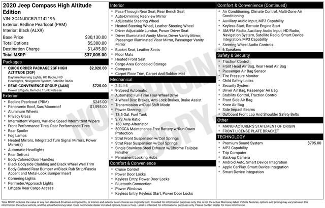 Experience the exceptional value and versatility of the 2020 Jeep Compass High Altitude. This SUV is ready to take you wherever the road leads, in style and comfort.