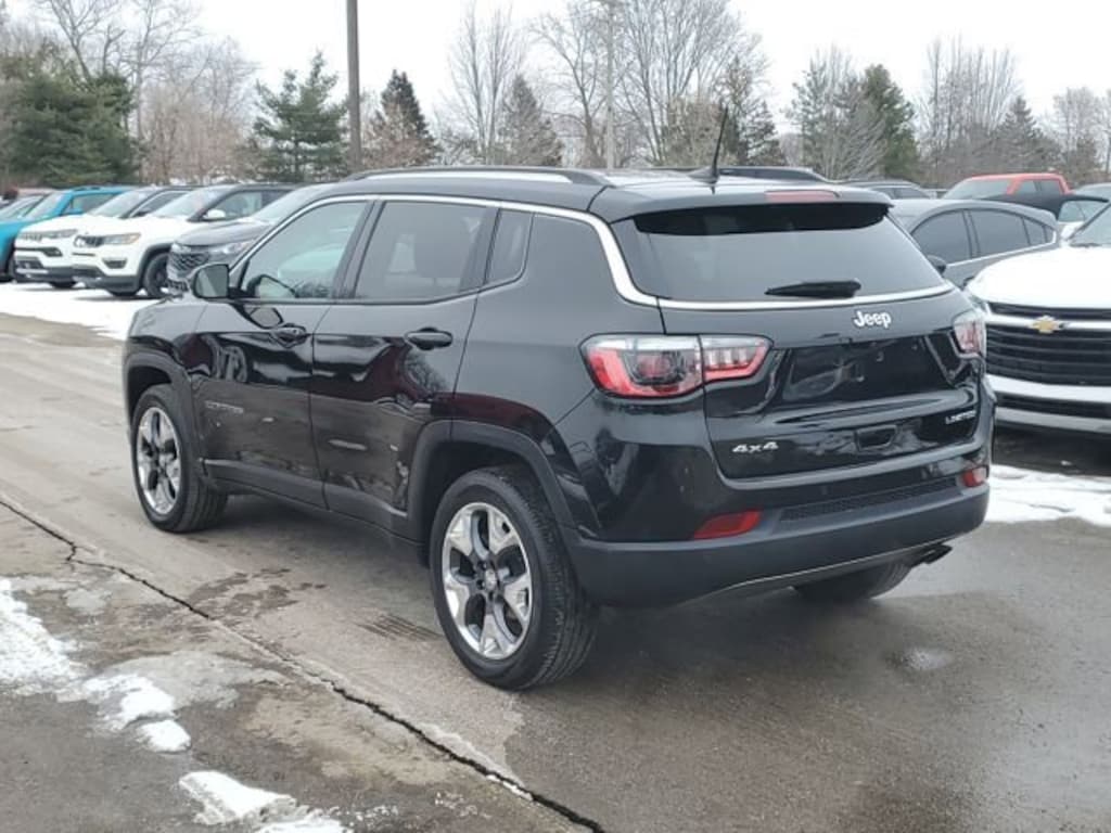 GOOD TIRES, REAR BACK UP CAMERA, LEATHER, GOOD BRAKES, RECENT TRADE IN, Compass Limited, 4D Sport Utility, 2.4L I4, 9-Speed 948TE Automatic, 4WD, Diamond Black Crystal Pearlcoat, Black Leather, 3.73 Axle Ratio, 4-Wheel Disc Brakes, 6 Speakers, ABS brakes, Air Conditioning, Alloy wheels, AM/FM radio: SiriusXM, Anti-whiplash front head restraints, Automatic temperature control, Brake assist, Bumpers: body-color, Delay-off headlights, Dual front impact airbags, Dual front side impact airbags, Electronic Stability Control, Four wheel independent suspension, Front anti-roll bar, Front Bucket Seats, Front Center Armrest w/Storage, Front dual zone A/C, Front fog lights, Fully automatic headlights, Heated door mirrors, Heated front seats, Knee airbag, Leather Trimmed Bucket Seats, Low tire pressure warning, Occupant sensing airbag, Overhead airbag, Panic alarm, ParkView Rear Back-Up Camera, Passenger door bin, Power door mirrors, Power driver seat, Power steering, Power windows, Quick Order Package 2GG, Radio: Uconnect 4 w/8.4 Display, Rain sensing wipers, Rear anti-roll bar, Rear window defroster, Rear window wiper, Remote keyless entry, Roof rack: rails only, Security system, Speed control, Split folding rear seat, Spoiler, Steering wheel mounted audio controls, Traction control, Turn signal indicator mirrors, Variably intermittent wipers, Wheels: 18 x 7.0 Polished/Gray Pockets Aluminum.