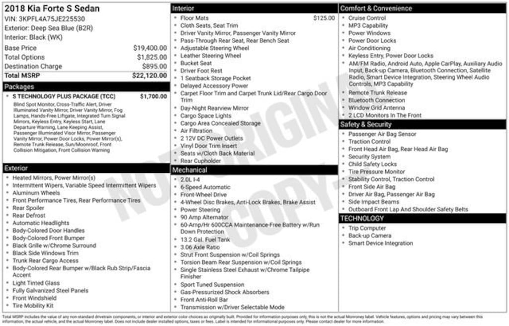 Deep Sea Blue 2018 Kia Forte S FWD 6-Speed Automatic 2.0L I4 DOHC Dual CVVT
