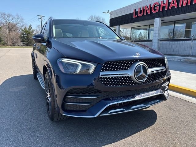 LEATHER, GOOD BRAKES, RECENT TRADE IN, GLE 350 4MATIC®, 4D Sport Utility, 2.0L I4 Turbocharged, 9-Speed Automatic, 4MATIC®, Lunar Blue Metallic, Macchiato Beige/Black w/MB-Tex Upholstery, 4-Wheel Disc Brakes, 8 Speakers, ABS brakes, Air Conditioning, Alloy wheels, AM/FM radio: SiriusXM, Auto High-beam Headlights, Automatic temperature control, Brake assist, Delay-off headlights, Electronic Stability Control, Exterior Parking Camera Rear, Four wheel independent suspension, Front Bucket Seats, Front Center Armrest, Front dual zone A/C, Fully automatic headlights, Heated front seats, MB-Tex Upholstery, Memory seat, Navigation system: MBUX, Panic alarm, Passenger door bin, Power driver seat, Power Liftgate, Power moonroof, Power passenger seat, Power steering, Power windows, Radio data system, Radio: 12.3 Media Display w/Touchscreen, Rain sensing wipers, Rear fog lights, Rear window defroster, Rear window wiper, Remote keyless entry, Security system, Speed-sensing steering, Speed-Sensitive Wipers, Split folding rear seat, Steering wheel memory, Steering wheel mounted audio controls, Traction control, Weather band radio, Wheels: 19 Twin 5-Spoke.