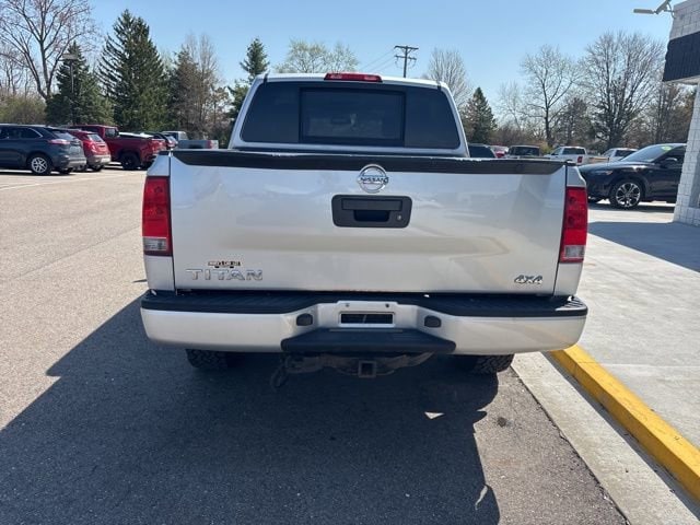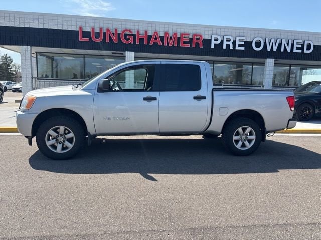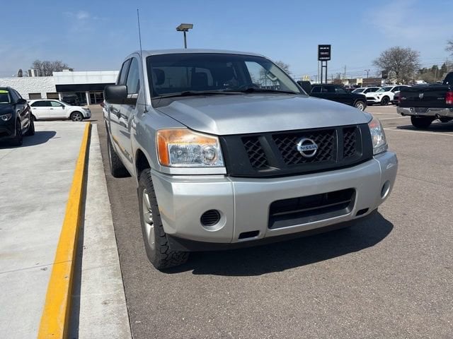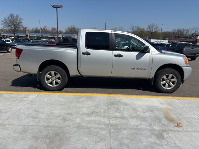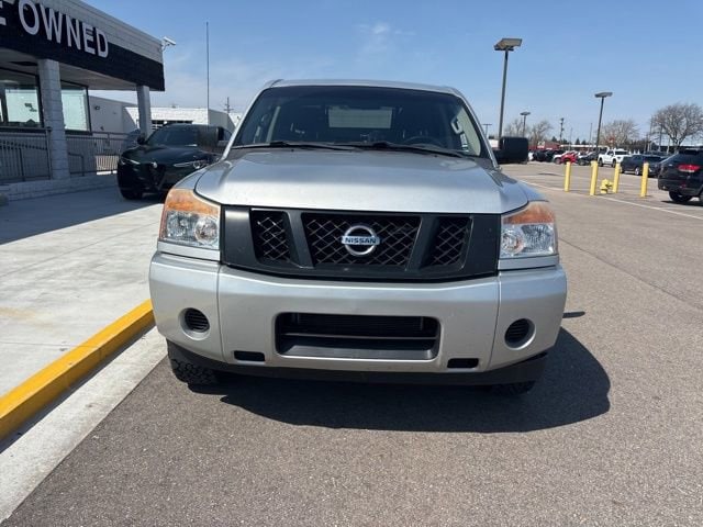 GOOD TIRES, RECENT TRADE IN, Titan S, 4D Crew Cab, 5.6L 8-Cylinder SMPI DOHC, 5-Speed Automatic, 4WD, Silver, Charcoal w/S Style Cloth Seating Surfaces, 18 Aluminum Alloy Wheels, 4-Wheel Disc Brakes, 40/20/40 Manual Split Bench Front Seat, 7-Pin Wiring Harness Connector, 8 Speakers, ABS brakes, Air Conditioning, AM/FM radio, AM/FM/CD Audio System, Brake assist, Bumpers: body-color, CD player, Class IV Integrated Receiver Hitch, Cruise Control, Driver door bin, Electronic Stability Control, Front Center Armrest, Front Overhead Console, Low tire pressure warning, Passenger door bin, Passenger vanity mirror, Power steering, Power windows, Rear reading lights, Rear seat center armrest, Rear step bumper, Rear window defroster, Remote Keyless Entry, S Popular Equipment Package, S Style Cloth Seating Surfaces, Sliding Tinted Rear Window, Speed-sensing steering, Speed-Sensitive Wipers, Split folding rear seat, Tachometer, Tilt steering wheel, Traction control, Trailer Brake Pre-Wiring (Under Instrument Panel), Variably intermittent wipers.